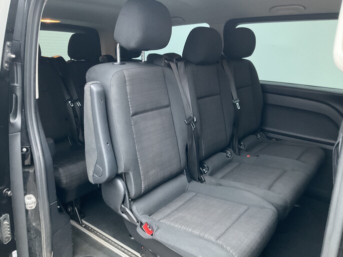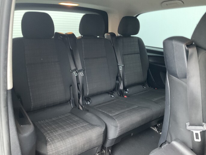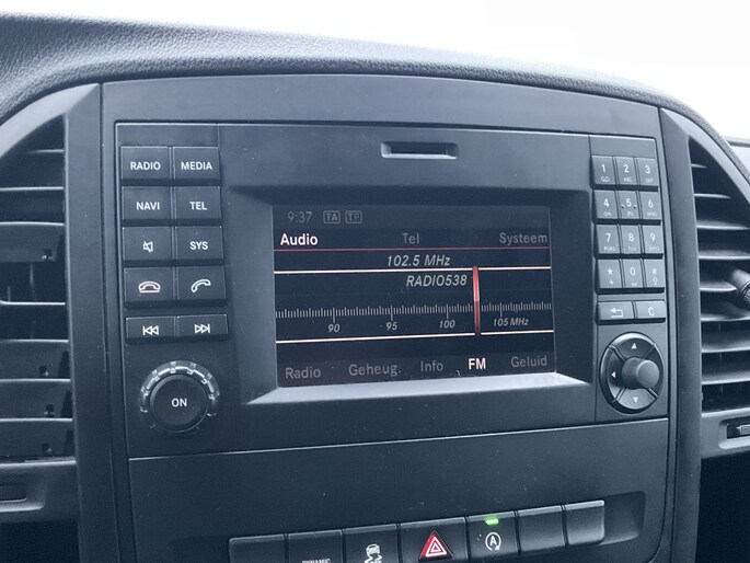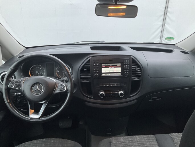 Deze Mercedes-Benz Vito Tourer is 'connected'. Belangrijke functies worden permanent gemeten en zijn uit te lezen via een speciale app, ook op afstand. Het audiosysteem bedient u vanaf het stuurwiel, zodat u uw ogen op de weg kunt houden. De sensoren van de achteropkomend verkeer waarschuwing registreren wat er gebeurt in de dode hoeken en achter u. U krijgt meteen een waarschuwing als u een achterligger over het hoofd ziet. In de regen hoeft u niet langer zelf de ruitenwissers in te schakelen. De regensensor zorgt ervoor dat de ruitenwissers altijd op de juiste snelheid werken. U bedient de cruise control eenvoudig zonder uw handen van het stuur te halen. De uitrusting van deze auto is met airconditioning, centrale deurvergrendeling met afstandsbediening, boordcomputer en verstelbaar stuur behoorlijk compleet.