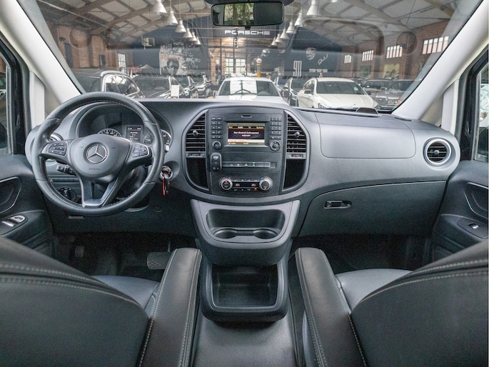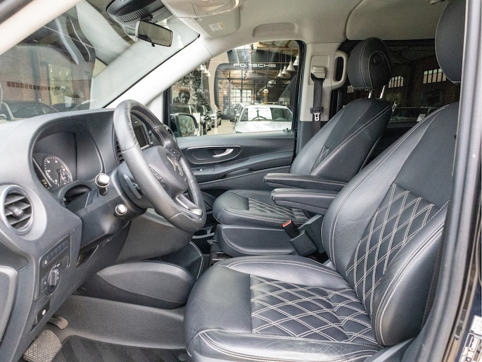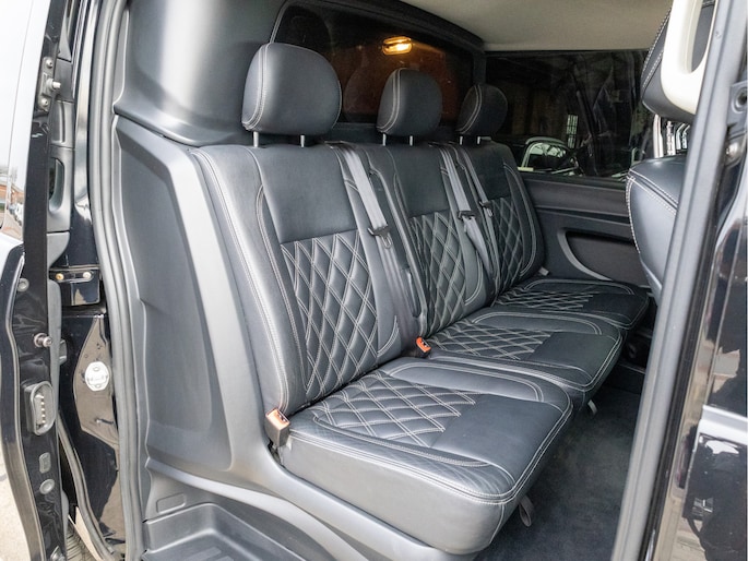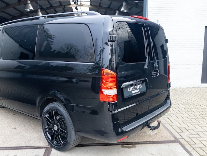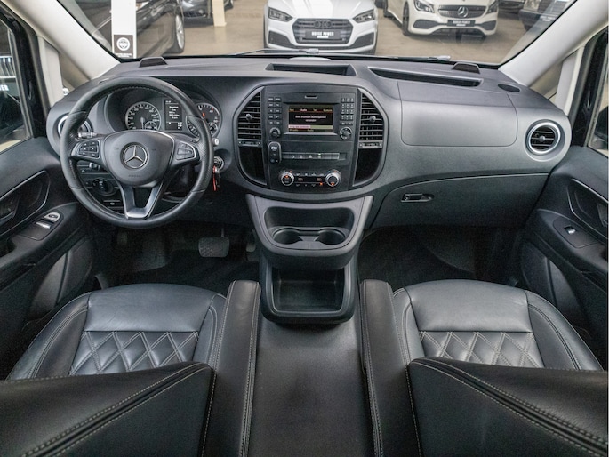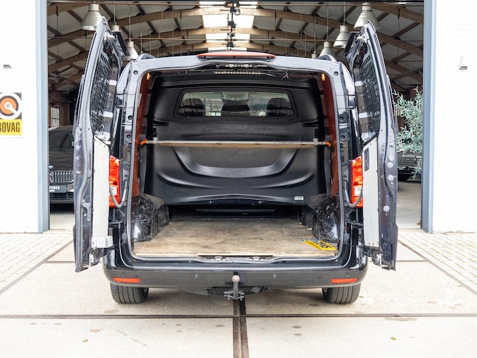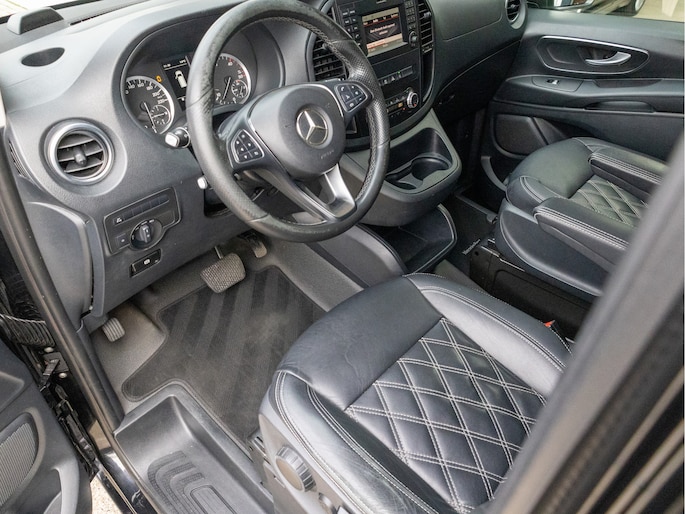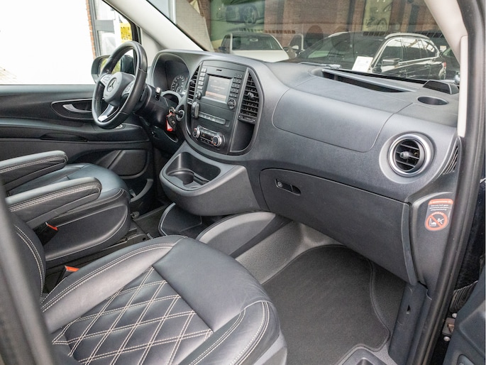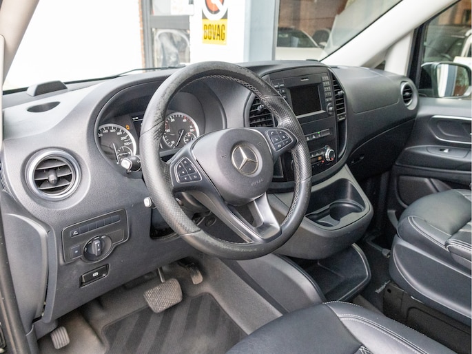 Origineel Nederlandse Mercedes-Benz Vito 114 CDI Lang DC Comfort Business Ambition L2H1 uit 2017 met een kilometerstand van 191.493 km, voorzien van een 2.1 CDI dieselmotor met 136 pk en een 7-traps automaat. Deze Vito is uitgevoerd met lederen bekleding en biedt veel comfort en gemak dankzij navigatie full map, automatische airco, cruise control, achteruitrijcamera en parkeersensoren. Praktisch in gebruik met zijschuifdeur rechts, achterdeuren met ruiten, dakrails, twee zitplaatsen rechtsvoor en een volledig tussenschot, terwijl de trekhaak hem extra inzetbaar maakt voor werk en vervoer. De uitstraling is netjes en zakelijk in zwart metallic en staat strak op 19 inch lichtmetalen velgen, met LED verlichting voor een moderne look. Optisch en technisch presenteert hij zich verzorgd en goed bruikbaar voor dagelijks intensief gebruik, met onderhoudsboekje aanwezig en een apk tot 31-10-2026. Door de combinatie van ruimte, comfort en betrouwbare dieseltechniek is dit een aantrekkelijke keuze voor wie een representatieve en complete dubbele cabine zoekt.