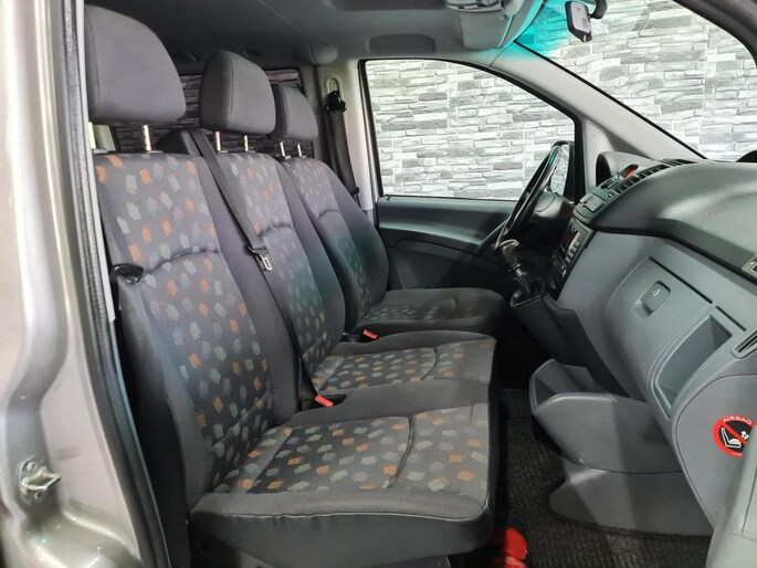 Aan boord van deze Mercedes Vito vind je onder meer heerlijke comfortstoelen die in hoogte verstelbaar zijn, en met armsteunen!