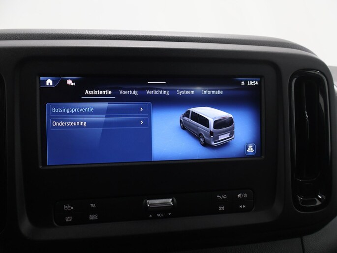 De Mercedes-Benz Vito is ook voorzien van ADAS. Deze Advanced Driver Assistence Systems fungeren als extra ogen en oren: ze houden voor u de weg in de gaten en grijpen in wanneer dat nodig is. Bij de veiligheidssystemen van deze auto hoort ook de verkeersbord-detectie. Die leest tijdens het rijden als het ware met u mee en attendeert u op de significante verkeersborden langs en boven de weg. Het Lane-keeping systeem registreert permanent of u binnen de lijnen van de rijstrook blijft; dwaalt u onbedoeld af, dan waarschuwt het systeem en corrigeert de koers. Vermoeid achter het stuur zitten vergroot de kans op een ongeval. Vermoeidheidsherkenning waarschuwt tijdig als u aan een rustpauze toe bent. Ook helpen het dodehoekdetectie, brake assist en bandenspanningcontrolesysteem, uw rit tot een veilige rit te maken.