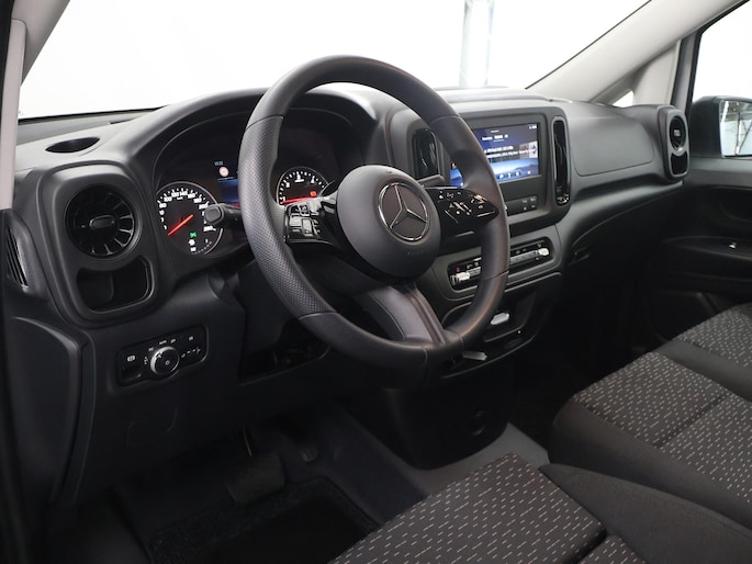 Ervaar de wonderen van de digitale mobiliteitswereld waarbij alles wat u wenst op het digitale dashboard verschijnt. De achteruitrijcamera maakt inparkeren gemakkelijker dan ooit. Bij deze auto is uw smartphone een geavanceerde afstandsbediening. Remote services brengen u overal in contact met uw auto. In deze Vito vindt u schakelaars op het stuur om het navigatiesysteem te bedienen en het audiosysteem met DAB-ontvangst. Cruise control is aanwezig; prettig voor de lange einden. Deze Mercedes-Benz is voorzien van WIFI-hotspot, airconditioning en verstelbaar stuur.