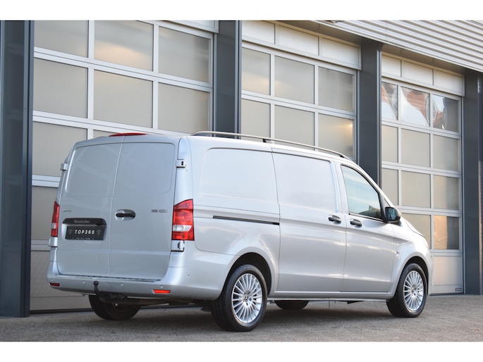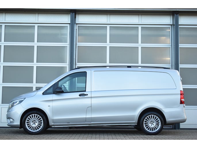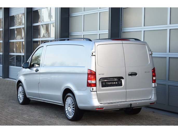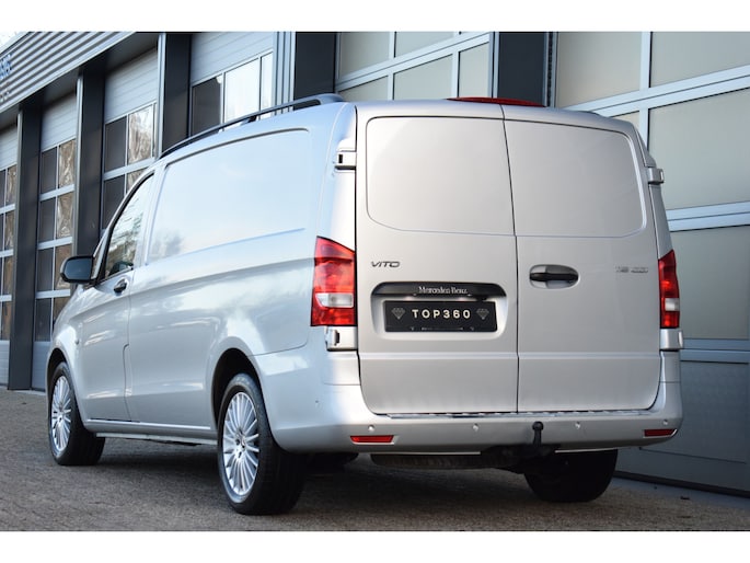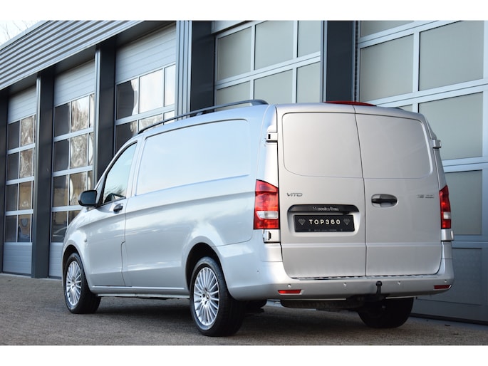 Mooie zilverkleurige Mercedes Vito 119cdi lengte 2 automaat met een trekhaak en de bumpers in de kleur.