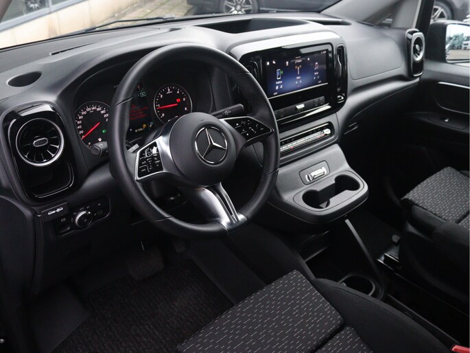 De Vito is o.a. voorzien van airco, achteruitrijcamera, parkeersensoren voor en achter, MBUX multimediasysteem met Apple CarPlay en Android Auto, cruise control, trekhaak met 2.500 kg trekgewicht en volledige laadruimte betimmering.
