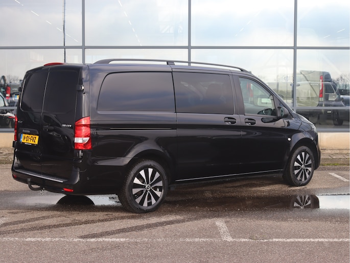 De Vito is o.a. voorzien van airco, achteruitrijcamera, parkeersensoren voor en achter, MBUX multimediasysteem met Apple CarPlay en Android Auto, cruise control, trekhaak met 2.500 kg trekgewicht en volledige laadruimte betimmering.