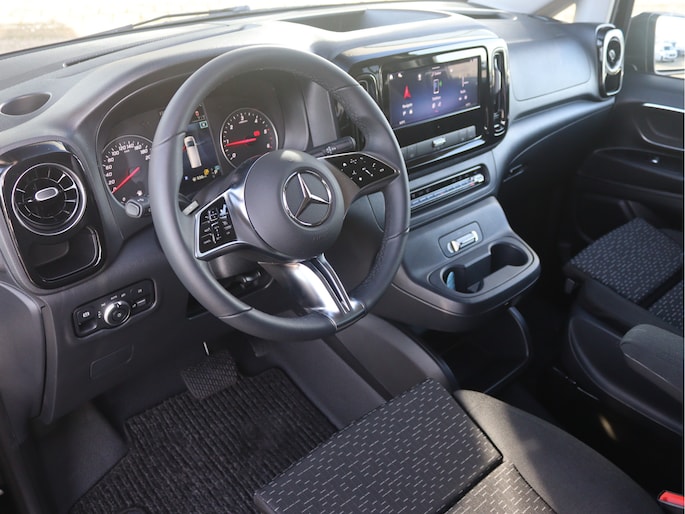 De Vito is o.a. voorzien van automatische airco, 360˚ camera, MBUX multimediasysteem met Apple CarPlay en Android Auto, navigatie, cruise control, trekhaak met 2.500 kg trekgewicht en volledige laadruimte betimmering.