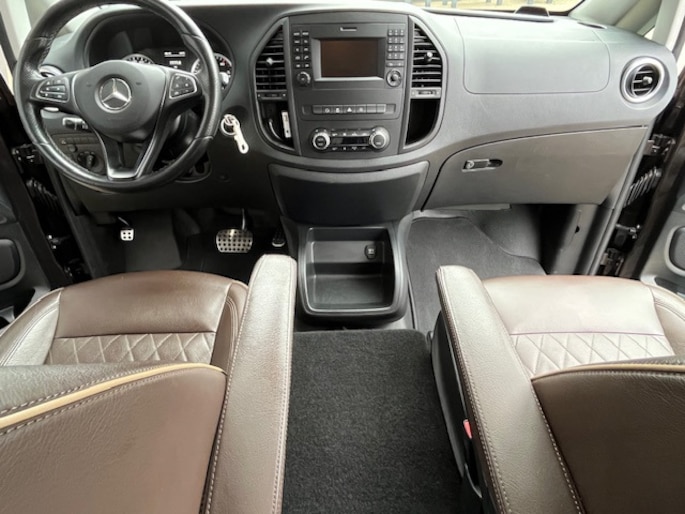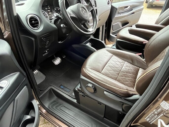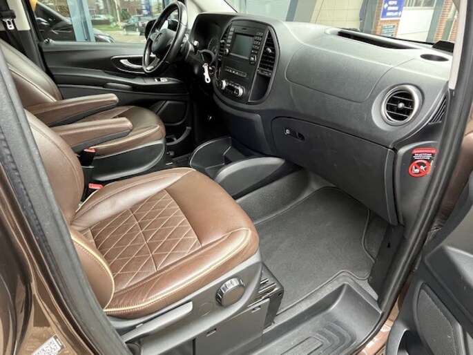Half werk zul je bij geen enkele Mercedes tegenkomen. 'The best or nothing', inderdaad. De aandrijving van deze Mercedes-Benz wordt verzorgd door een viercilinder motor en een automatische transmissie. Een openzwaaiend portier kan flink wat wind vangen, met gevaarlijke gevolgen. Dat zal niet gebeuren met de handige, ruime schuifdeur. Ook warmtewerend glas en trailer assistent horen tot de voorzieningen op deze auto.