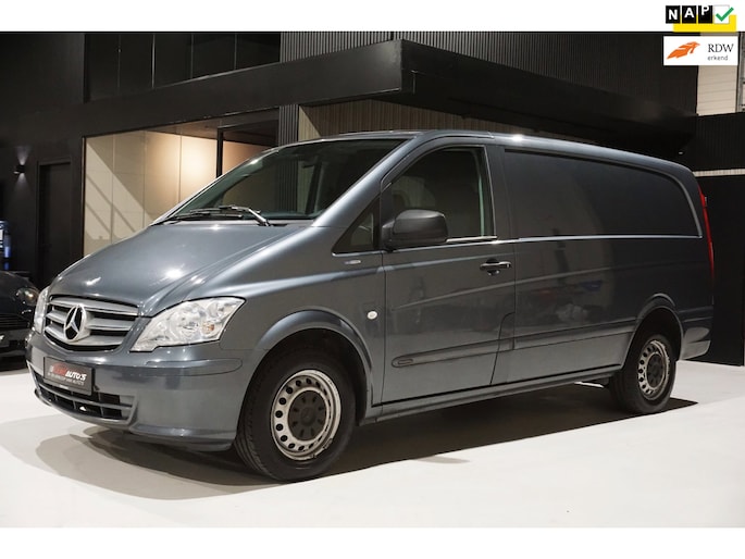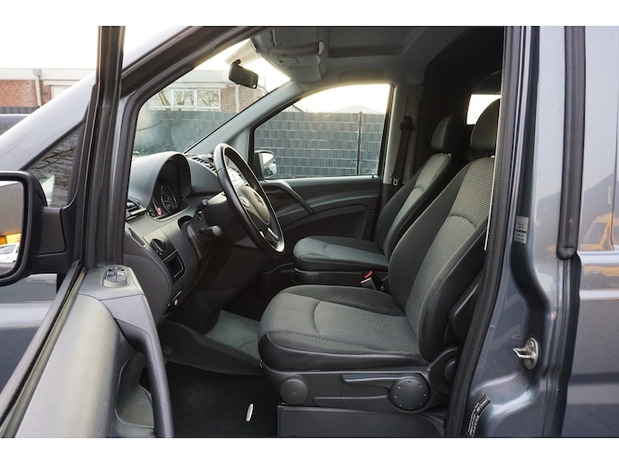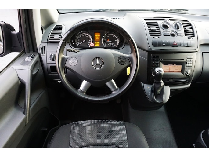 Goed onderhouden origineel Nederlandse Mercedes Benz Vito 113 CDI 320 lang automaat enkel cabine grijs kenteken voorzien van opties zoals: cruise control, airco, elektrische ramen, multimediasysteem met bluetooth/radio/cd, bluetooth carkit, armsteun voor, elektrisch bedienbare/inklapbare/verwarmbare buitenspiegels, multifunctioneel lederen stuurwiel, 16 stalen velgen met Continental zomerbanden, schuifdeur rechts, stuurbekrachtiging, centrale deurvergrendeling op afstand, 1 sleutel en nog veel meer.