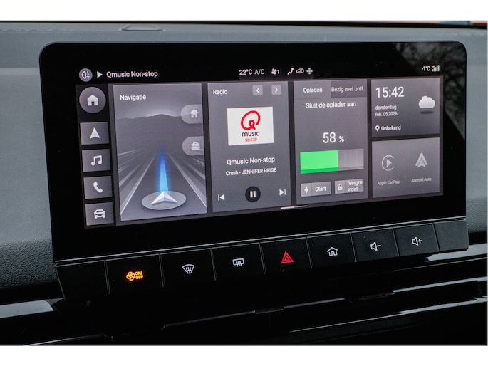 Het digitale dashboard ondersteunt u voortdurend met actuele, bruikbare informatie. De 360 graden camera kan het blinde vlek probleem van de achteruitkijkspiegel oplossen, waardoor ongevallen worden voorkomen. Met adaptive cruise control houdt de auto zelfstandig afstand tot uw voorligger. Een veiligheidsverhogende optie waarmee u comfortabel onderweg bent. De aanwezige file assistent meet de afstand tot uw voorligger en zorgt voor een veilige afstand. Staat het voor u opeens stil? Dan zorgt het systeem dat de auto ook stopt. Door de draadloze oplaadmogelijkheid voor telefoons bent u verlost van kabels en snoertjes. Het opladen gaat simpel door de smartphone in de speciale houder te plaatsen. En deze auto heeft ook dashboard met spraakbediening, full map navigatiesysteem, WIFI-hotspot, achteropkomend verkeer waarschuwing, kruisend verkeer detectie en electronic climate control als standaard uitrusting.