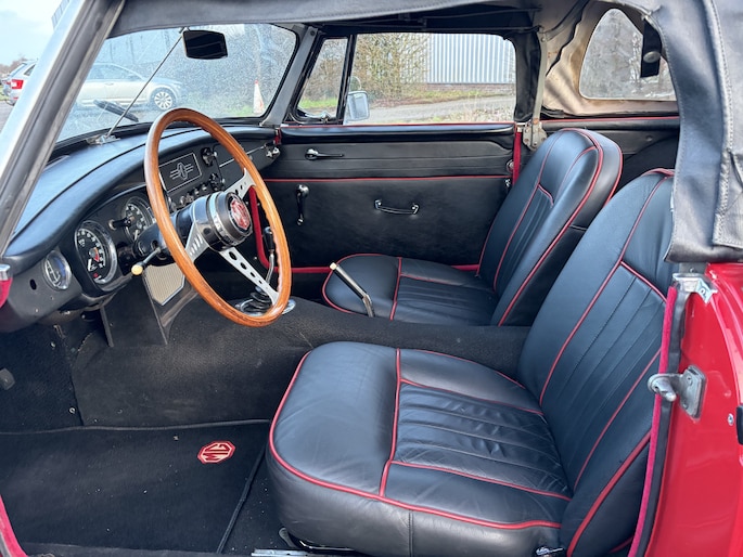 Roadster TARTAN RED BJR 1963 94 PK LINKS GESTUURD! | Wire Wheels | PULL-HANDLE DEUREN | LUGGAGE RACK | CHROMEN BUMPERS | ZEER NETTE CONDITIE