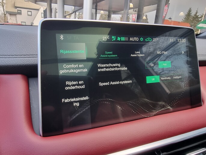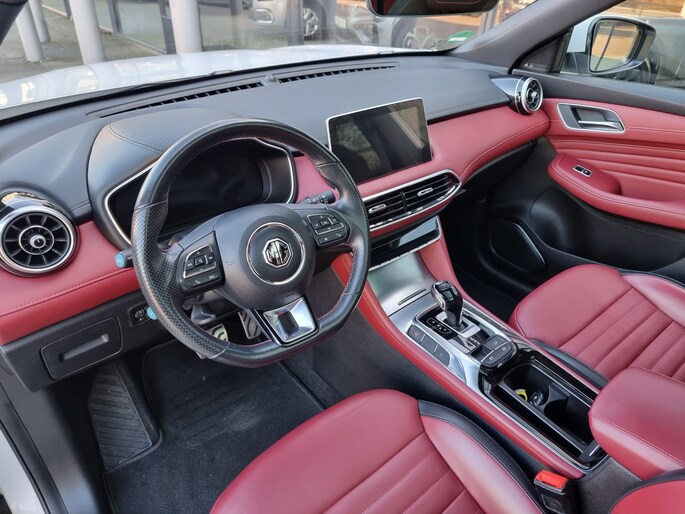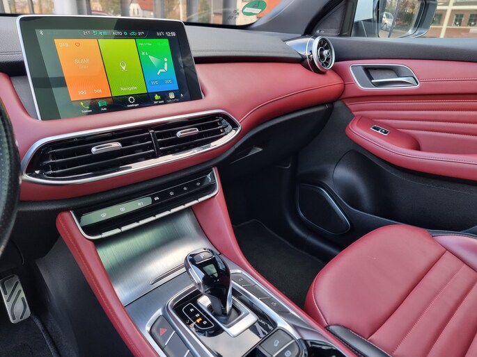 Snelheid, omgevingsinfo, navigatie en communicatie... Het digitale dashboard geeft alles realtime weer. De 360 graden camera op deze auto biedt u een volledig, panoramisch zicht op de omgeving. Adaptive cruise control is een comfortabele en veilige optie. Het systeem reguleert de snelheid en houdt automatisch afstand tot uw voorligger. Loopt het verkeer onderweg vast, schakel dan de file assistent in en laat het systeem zorgen voor de juiste afstand bij stilstaan en rijden. Vergeten af te sluiten? Bandenspanning onvoldoende? De speciale app geeft u direct een seintje met behulp van Connected Services. De uitrusting van deze MG is met full map navigatiesysteem, electronic climate control, DAB ontvangst, regensensor, keyless entry en automatisch dimmende binnenspiegel behoorlijk compleet.