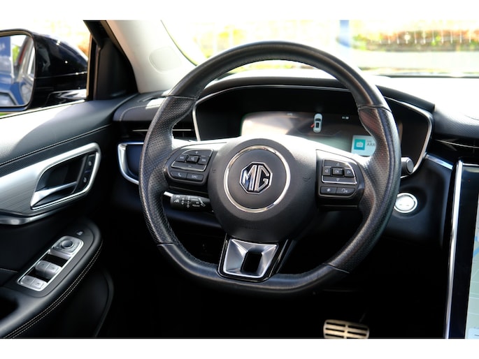 Voor het overzicht tijdens iedere rit is deze MG Marvel R voorzien van een gemakkelijk afleesbaar digitaal dashboard. Met de 360 graden camera op deze auto wordt parkeren in smalle parkeerplekken een makkie dankzij het optimale zicht dat het apparaat levert. Adaptive cruise control houdt de ingestelde snelheid vast en houdt afstand tot het voertuig voor u. Net als een smartphone of een slimme speaker kunt u deze auto bedienen met stemcommando's. Had u de auto nou wel afgesloten? Met Connected Services checkt u het overal en altijd. Natuurlijk behoren navigatiesysteem, electronic climate control, draadloos opladen, DAB ontvangst, regensensor en keyless entry ook tot de uitrusting van deze complete auto.