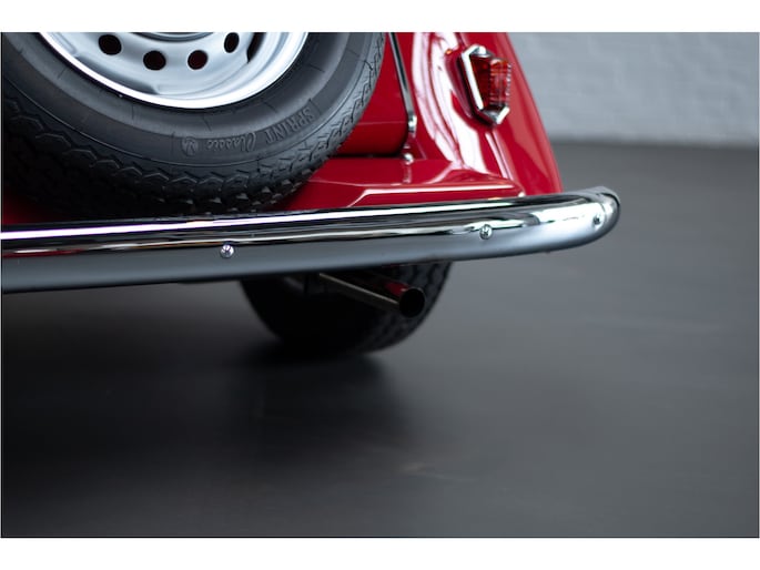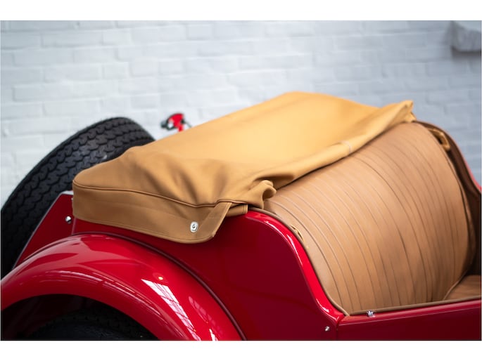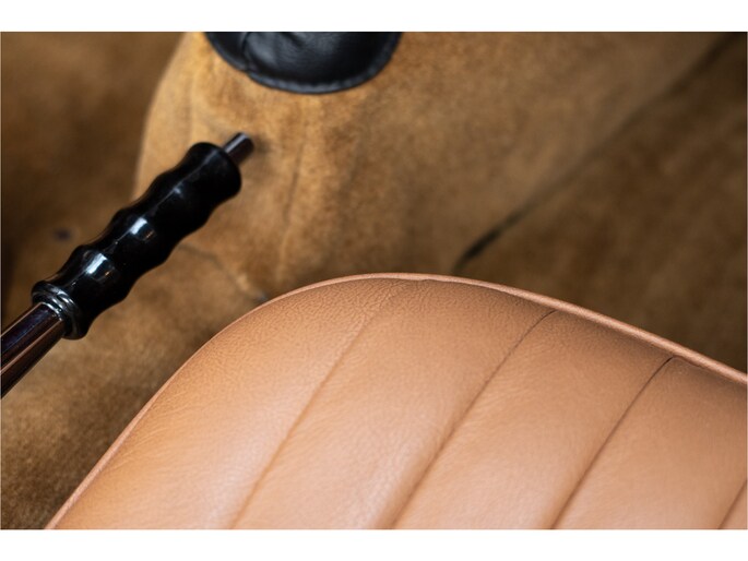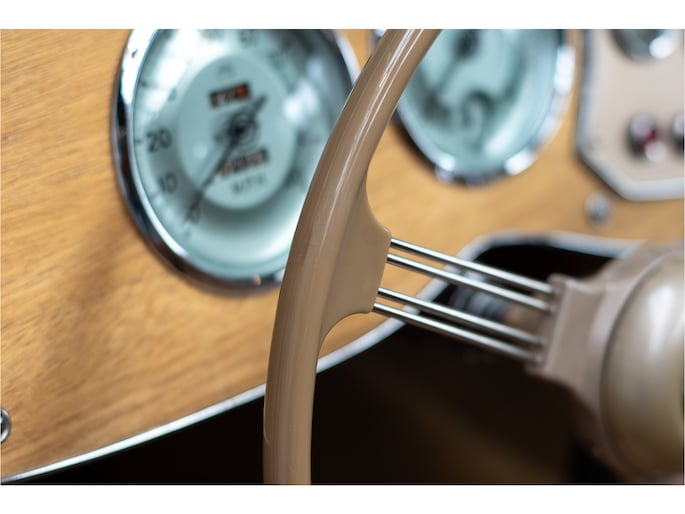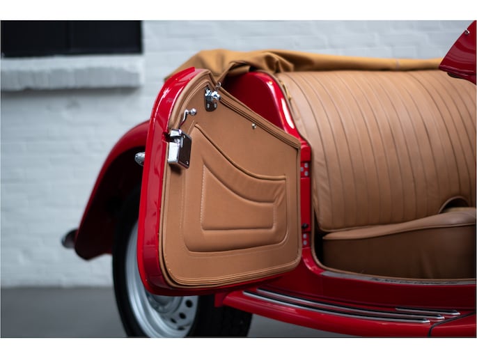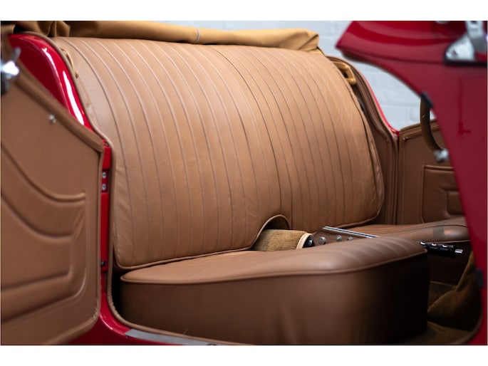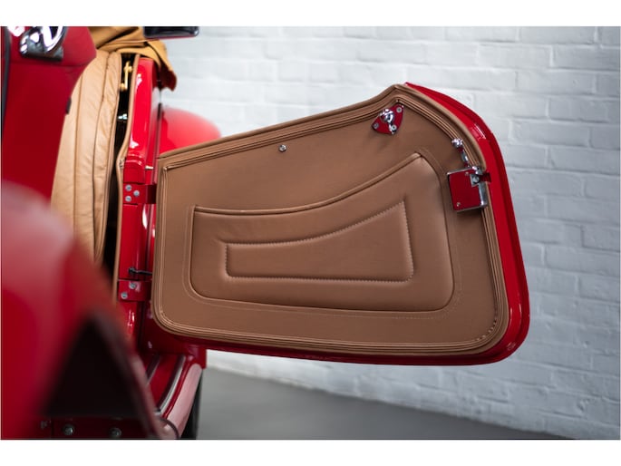 Het interieur is tijdens de restauratie volledig vernieuwd met hoogwaardige lederen bekleding, een nieuw tapijt en een nieuwe cabriokap inclusief zijruiten. Alles verkeert in absolute nieuwstaat en draagt bij aan de authentieke Britse roadsterbeleving.