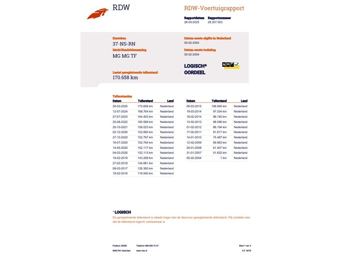 Kilometerstand gecontroleerd
