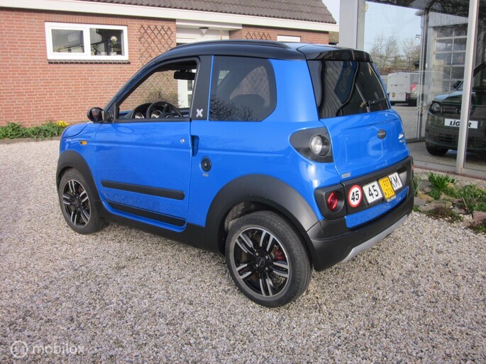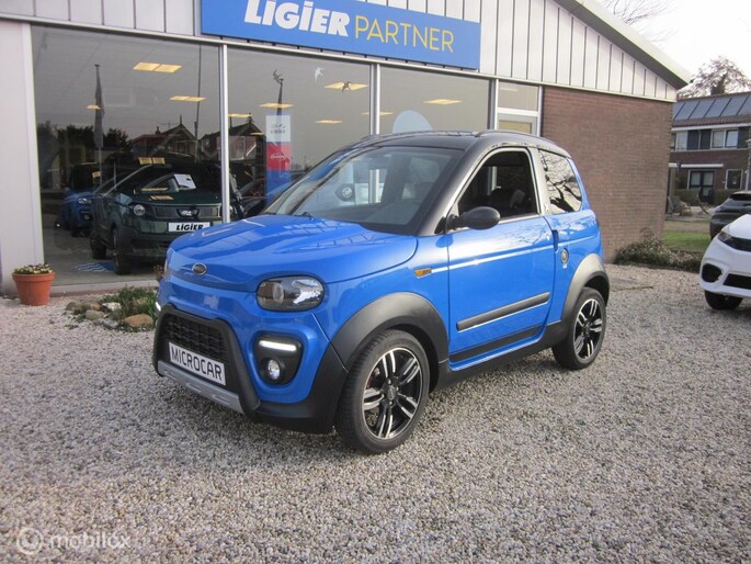 Deze stoere Microcar MGoX DCi brommobiel is uitgevoerd met stuurbekrachtiging en luxe stoelen! De occasion minicar is van november 2020. De 2dehands 45-km auto is uitgevoerd als sportieve MGoX uitvoering. De blauwe lak, i.c.m. het zwarte dak, skirts en velgen is een mooie combinatie