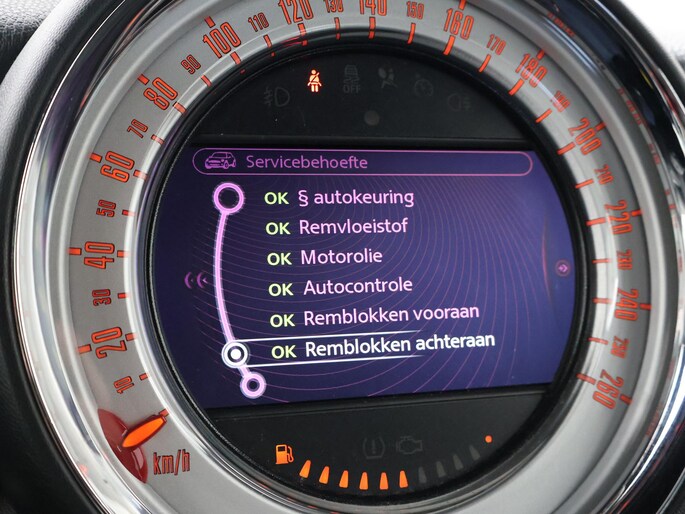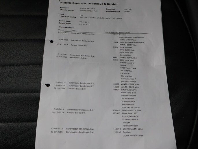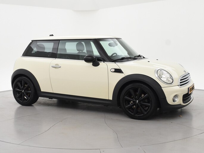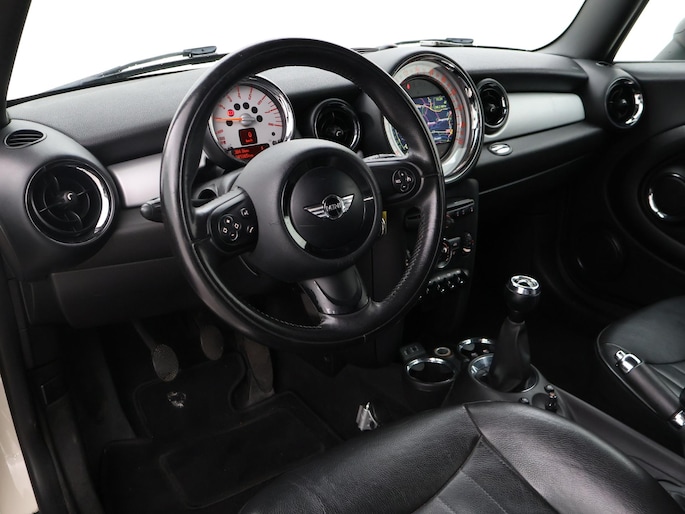 Origineel Nederlandse Mini van 10-2012, 1.6 One Business Line, Pepper white exterieurkleur, Zwart volledig leder interieur, Airco, Cruise control, Navigatiesysteem met kaartweergave, Lichtmetalen velgen, Onderhoudshistorie volledig afgestempeld aanwezig.