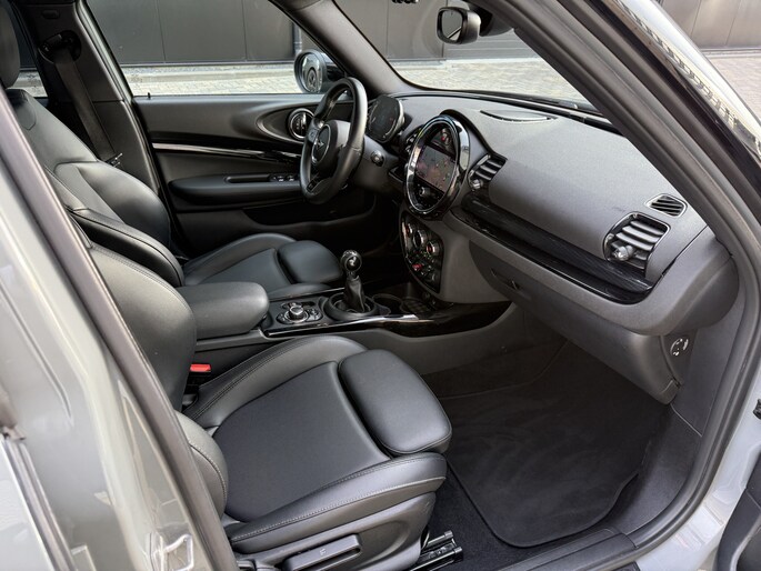 Schitterende Mini Clubman Cooper Knightsbridge in Moonwalk Grey metallic. Deze Clubman zit bomvol opties zoals: Panorama dak, achteruitrijcamera, cruise control, parkeersensoren voor + achter met parkeer assistent, draadloze telefoonlader, Apple Carplay, navigatie, virtuele cockpit, keyless entry and start, 18 inch licht metalen velgen, lederen bekleding, sport-comfortstoelen, etc..