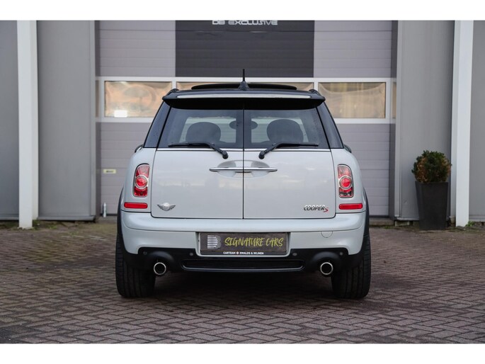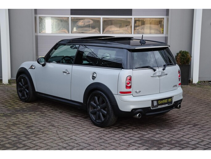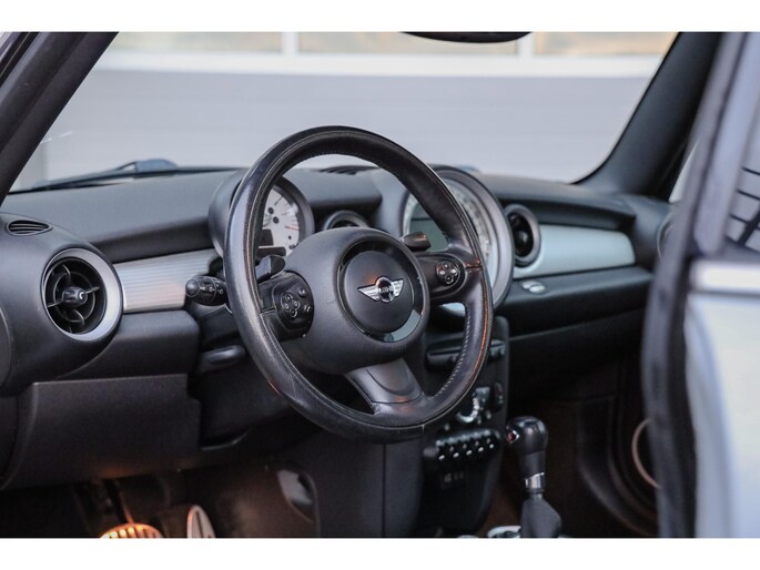 Deze Mini Clubman S is uitgevoerd in de stijlvolle kleur White Silver Metallic, gecombineerd met een contrasterend zwart dak, zwarte accenten en sportieve 17‑inch velgen. Een tijdloze en zeer gewilde kleurstelling.