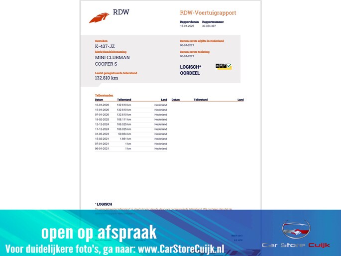 Kilometerstand gecontroleerd