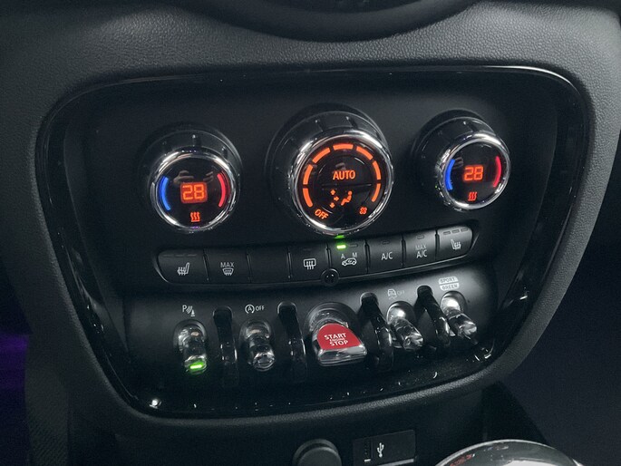 Het digitale dashboard vertelt u onderweg alles dat bijdraagt aan een veilige, efficiënte rit. Zuinig, veilig en ontspannen op pad: dat kan dankzij het aanwezige full map navigatiesysteem. Radarsensoren aan de achterkant van de auto zorgen voor een achteropkomend verkeer waarschuwing als de afstand tot het verkeer achter te klein wordt. Of het buiten nu warm is of koud, dankzij automatische airconditioning is het binnen altijd behaaglijk. Door de audiobediening op het stuur regelt u elke aanpassing van het geluid en de muziek zonder het stuur los te laten. Ook is de MINI uitgerust met: DAB ontvangst, parkeersensoren achter, regensensor, cruise control, sportstuurwiel en keyless entry.