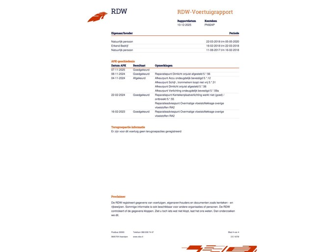 - Onderhoudshistorie aanwezig: Ja