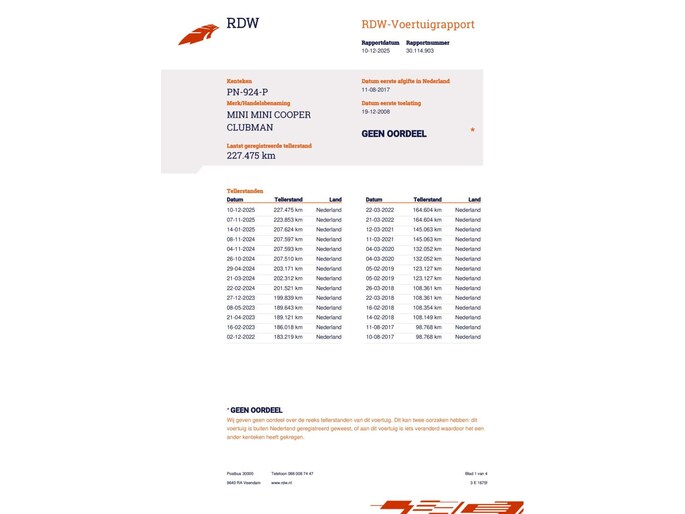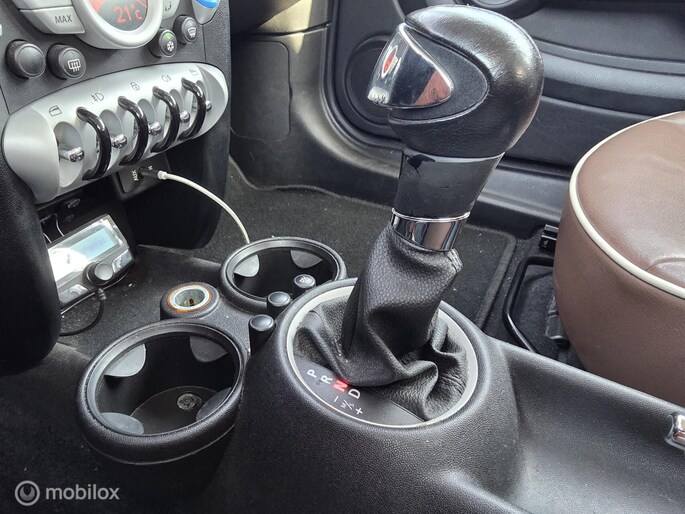 **Ja dit is weer een mooi verhaal, zoals elke Mini verbruikte ook deze olie. Eigenaar heeft de auto niet meer nodig vanwege auto van de zaak en vroeg ons de auto te verkopen. We wilden de auto dan wel gemodificeerd hebben zodat het olieverbruik significant naar beneden zou gaan. Dus weggebracht bij een gespecialiseerd bedrijf voor nieuwe klepseals en daarbij gelijk gevraagd distributieketting te vervangen zodat het allemaal weer top is. Ter plaatse zijn daarnaast ook nog de twee nokkenassolenoids, nokkenas versteller en de nokkenas zelf vervangen. Kosten overstijgen de helft van de waarde van de auto. Jammer voor oude eigenaar, groot voordeel voor de nieuwe. Want hoe leuk is de mini uit deze tijd, zeker in station uitvoering, in het wit met bruin leren interieur en race strepen op de motorkap. En helemaal speciaal is de automaat. Heerlijk schakelende 6 versnellingsbak met flippers aan het stuur. We hebben de auto uitgebreid gereden, want dat vinden we fijn, vertrouwd en noodzakelijk om iets over de auto te kunnen vertellen.