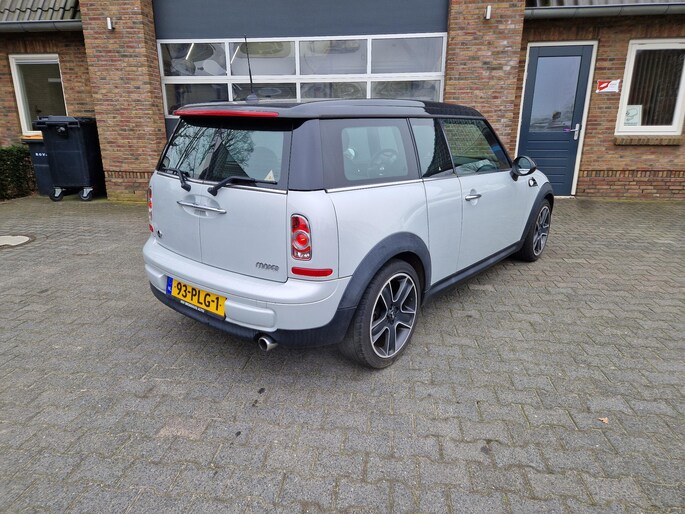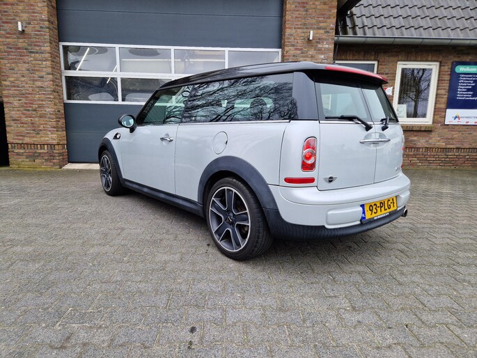 Met een auto als deze Mini Mini Clubman komt u absoluut goed voor de dag. De aandrijving komt voor rekening van een benzinemotor en een handgeschakelde zesversnellingsbak. De strakke sportstoelen hebben niet alleen de looks, maar bewijzen ook hun functie als u wat meer vraagt in de uitdagende bochten. Van binnen lijkt het allemaal uitermate ruim dankzij de vrije inval van daglicht via het elektrisch bediende glazen panoramadak. Xenonverlichting zorgt voor een krachtige en heldere lichtbundel. Natuurlijk behoren 16 inch lichtmetalen velgen en halflederen bekleding ook tot de uitrusting van deze complete auto.