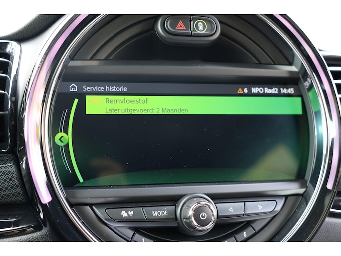 01CB CO2 omvang01DE Emissienorm EU6 RDE01TW MINI LM-velg Star Spoke zwart0223 Adaptief onderstel0230 EU-specifieke extra werkzaamheden0249 Multifunctie v stuurwiel02TC Sportversnellingsbak m. dubb. koppeling02VB Bandenspanningsweergave02VG Performance control02XB MINI Yours lederen sportstuur0302 Alarmsysteem0313 Buitenspiegel inklapbaar0322 Comforttoegang0325 Achterspoiler0329 Motorkapstreep zwart0359 Gezichtspakket0383 Dak en spiegelkappen zwart03AG Achteruitrijcamera03L2 Piano black exterieur0402 Panoramadak elektrisch0413 Bagagenet0420 Verduisterde ruiten0423 Vloermat velours0428 Gevarendriehoek en verbandspakket0430 Binnen-/buitenspiegel, aut. dimmend0431 Binnenspiegel, automatisch dimmend0459 Stoelverstelling elektrisch met memory0465 Neerklapbare achterbank0470 Isofix-System0473 Armsteun voor0481 Sportstoel0493 Opbergpakket0494 Stoelverwarming bestuurder/passagier04AA Dakhemel antraciet04GV MINI Yours Interior Style Piano Black04NE Blow-By verwarmer04V9 MINI Excitement-pakket04VA MINI Driving Modes0508 Park Distance Control (PDC)0534 Automatische airco0541 Adaptive Cruise Control0548 Kilometersnelheidsmeter0552 Adaptieve LED-koplamp0563 Lichtpakket05A1 LED Mistlamp05AA Mistachterlicht05AS Driving Assistant05DP Parkeerassistent0654 DAB-Tuner (voorbereid voor DAB+)0674 Hifi-systeem Harman Kardon06AC Intelligente noodoproep06AD MINI Head-Up Display06AE Teleservices06AK Connected Drive Services06AM Real-Time Traffic Information06AP Remote Services06CP Smartphone-integratie06FP Radio MINI Visual Boost06NM MINI Connected06NT MINI Connected XL06NW Telefonie met draadloos opladen06UM MINI navigatiesysteem07GK Connected Navigation Plus07L6 City07Y2 Chili II0801 Duitsland-uitvoering0851 Taal Duits0879 Boorddocumentatie Duits08KA Olieverversingsinterval 24 mnd/30.000 km08R9 Koelmiddel R1234yf09AA Bescherming buitenzijde09BD BusinesspackageE070 Accu 70 AhLEDE Leeruitrusting