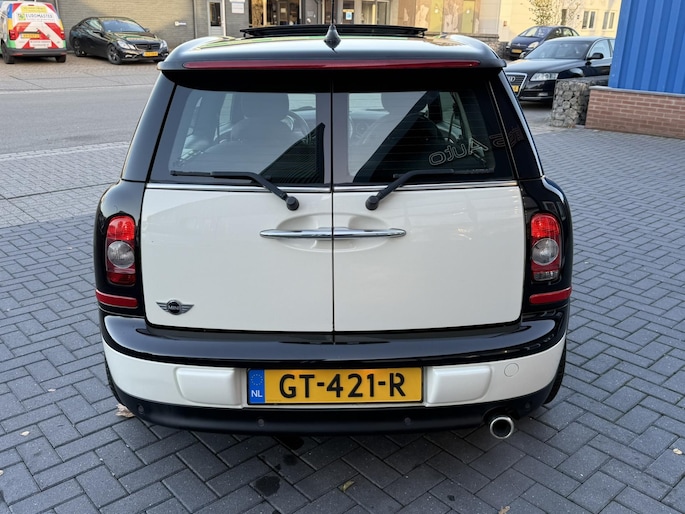 Alle technologie in de Mini Mini Clubman is er op gericht om uw rit veilig en gemakkelijk te laten verlopen. De aandrijving van deze Mini wordt verzorgd door een viercilinder motor en een handgeschakelde zesversnellingsbak. Het glazen panoramadak laat u genieten van een wijds uitzicht en meer lichtinval. Met de krachtige xenonverlichting rijdt u ontspannen in het donker. Bij de zeer complete uitrusting van deze auto behoren ook 17 inch lichtmetalen velgen en halflederen bekleding.