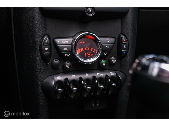 De auto is ook uitgevoerd met automatische airconditioning. Even switchen naar de verkeersinformatie? Ook dat kan met één druk op de knop van de audiobediening op het stuur. Parkeersensoren ondersteunen u tijdens het in- en uitparkeren. Deze Mini is voorzien van buitentemperatuurmeter, lederen stuur, centrale deurvergrendeling met afstandsbediening en boordcomputer.