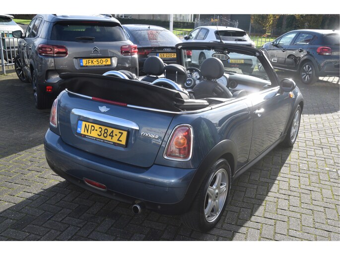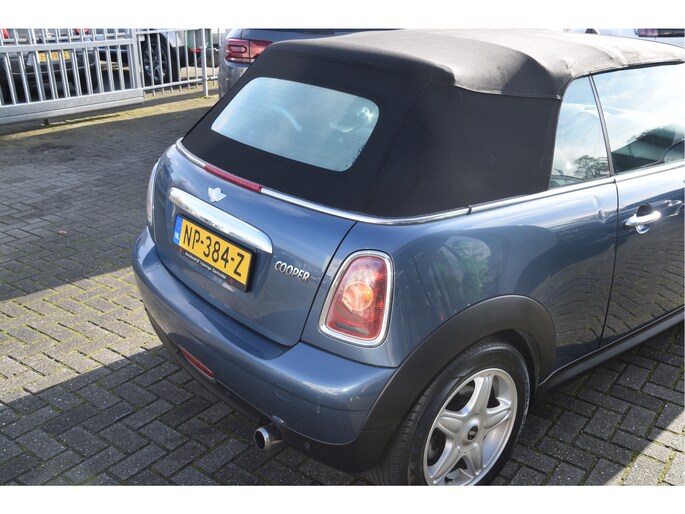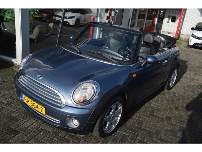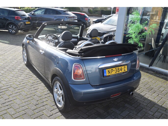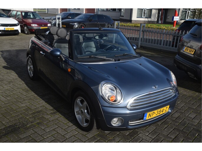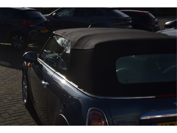 Leuke Mini cabriolet. O.a. voorzien van lederen bekleding, stoelverwarming, parkeersensoren, airco, licht metalen wielen en radio/CD speler.
