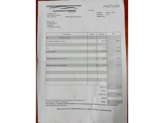 Optioneel afleverpakket (€ 495): 3 maanden garantie: 3 maanden garantie op de draaiende delen, dit is inclusief een afleverbeurt, een nieuwe APK en tenaamstellen van het voertuig.