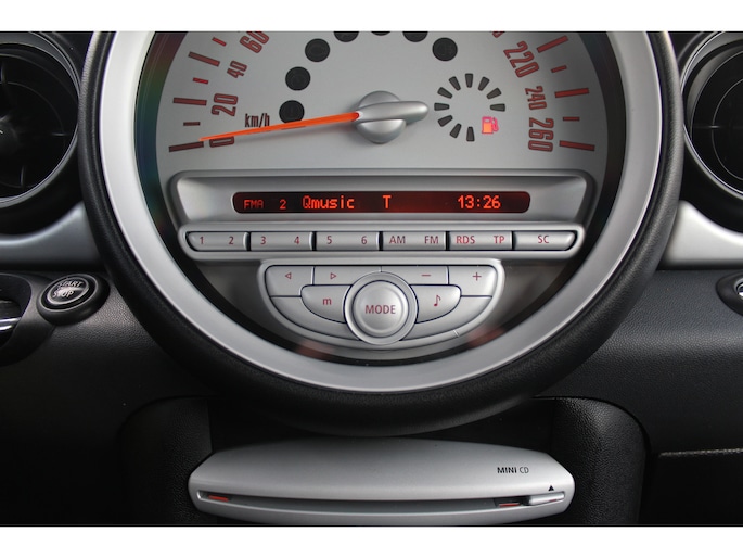 Cruise control houdt automatisch de ingestelde snelheid vast. Zo kunt u zich volledig op het verkeer concentreren. Allicht is er in deze auto ook airconditioning. Deze MINI is voorzien van navigatiesysteem, buitentemperatuurmeter, lederen stuur, centrale deurvergrendeling met afstandsbediening en boordcomputer.