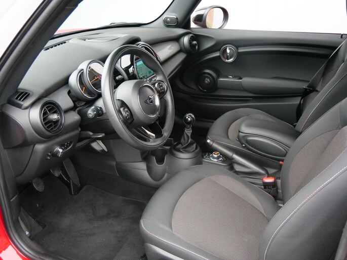 Wat wilt u onderweg horen? Er is volop keus, dankzij bluetooth. Het full map navigatiesysteem is met het audiosysteem gecombineerd. Automatische airconditioning verwarmt of koelt het interieur met een druk op de knop. De automatisch inschakelbare verlichting en regensensor zorgen dat onderweg automatisch de verlichting en de ruitenwissers worden ingeschakeld. Daarmee nemen ze u veel werk uit handen. De cruise control zorgt voor zorgeloos, ontspannen en zuinig rijgedrag. De MINI is standaard voorzien van: sportstuurwiel, centrale deurvergrendeling met afstandsbediening en boordcomputer.
