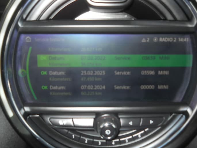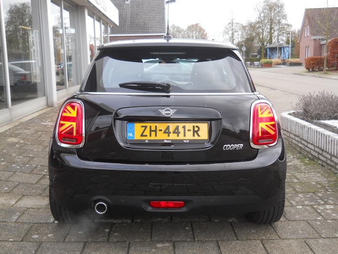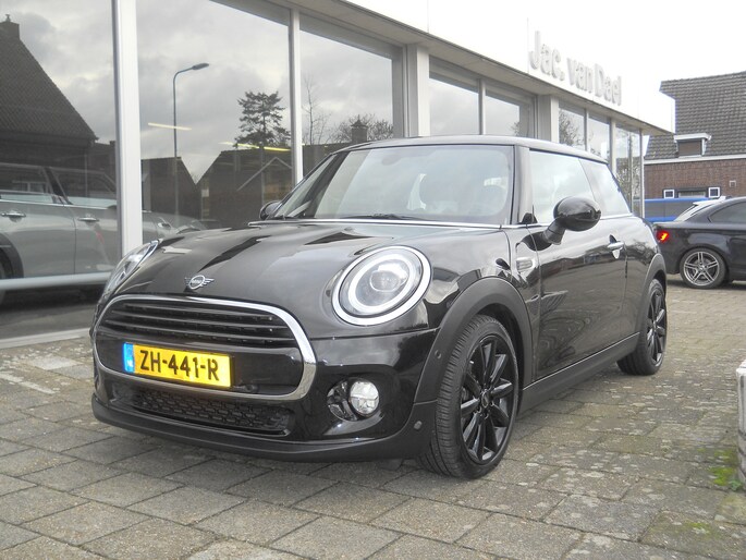 Originele Nederlandse dealer onderhouden MINI Cooper Chili uitvoering, Midnight Black metallic met zwart half stof-leder, 17 inch Cosmos Spoke velgen, Color line carbon black, Witte knipperlichten Buitenspiegels elektrische inklapbaar, Parkeer sensoren voor en achter, Achterlichten Union Jack, Led koplampen en mistlampen, Alarm klasse 3, Sportstoelen, Comfort Acces, Navigatie Plus, Stoelverwarming, Hemelbekleding Antrazit, Middenarmsteun voorin, MINI Excitement en Driving modus pakket, Regen/licht sensor, Head-up Display, Bluetooth, HiFi Harman Kardon, Cruise controle, Automatische airco, Kosten rijklaar maken voor 6 maanden Garantie € 495,=.