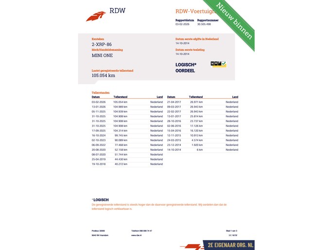 Deze Mini is voorzien van een Apk keuring geldig tot en met 05-11-2026.