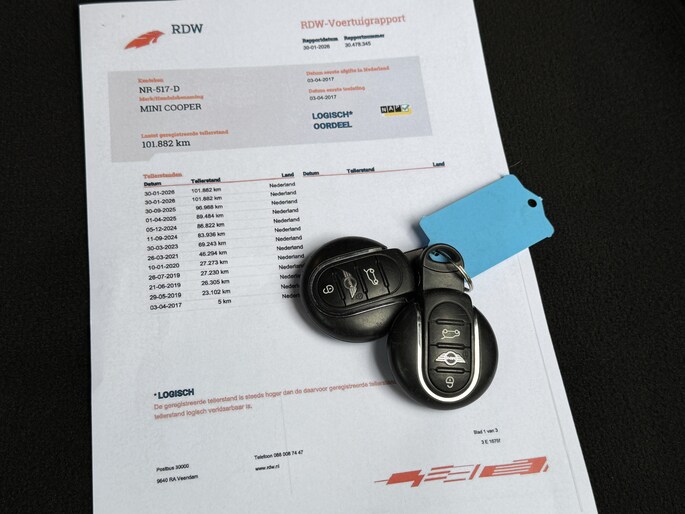 De APK is geldig tot 3-4-2027 en deze Mini staat op 4 goede all season banden.