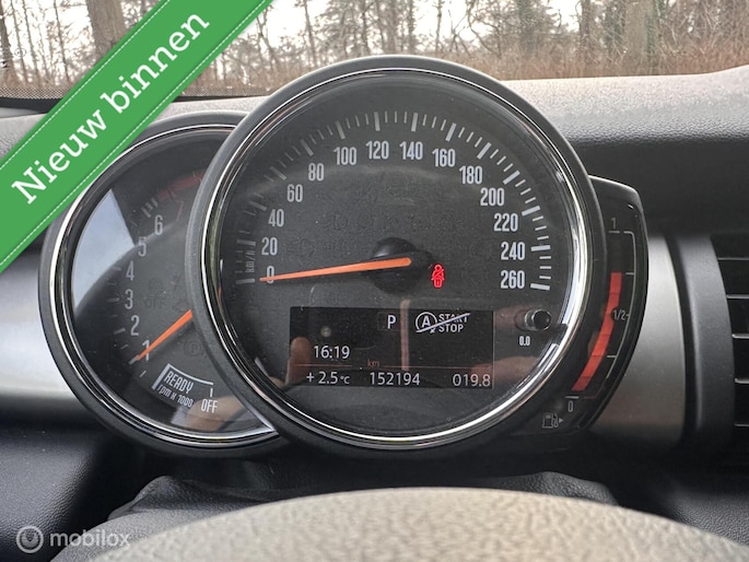 Snelheid, brandstofinfo, noem maar op. Het digitale dashboard houdt u permanent op de hoogte. Goed en overzichtelijk, onderhoudsstatus, vergrendeling, audio... de mogelijkheden van remote services zijn haast oneindig. Ook deze auto laat zich bedienen en analyseren via uw smartphone! Kies de muziek waarvan u houdt, dankzij de dab-radio klinkt het altijd geweldig. Intussen bedient u het audiosysteem met de knoppen op het stuur. Ook over uw schouder ziet u onderweg niet alles wat er aan de achterzijde gebeurt. Daarom heeft deze Mini Mini een achteropkomend verkeer waarschuwing. In deze Mini kunt u zich concentreren op het verkeer, terwijl de auto de omgeving voor u in de gaten houdt. Een automatisch inschakelbare verlichting zorgt dat de verlichting aangaat als het donkerder wordt - in tunnels bijvoorbeeld - en de regensensor schakelt de ruitenwissers in als het nodig is. U hoeft er niets aan te doen. De uitrusting van deze auto is met WIFI-hotspot, lederen sportstuur, Park assist, cruise control, keyless entry, Apple CarPlay en airconditioning behoorlijk compleet.