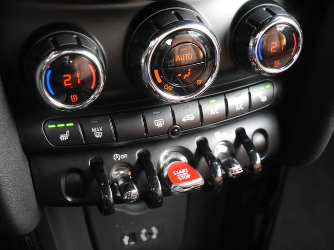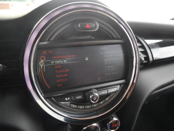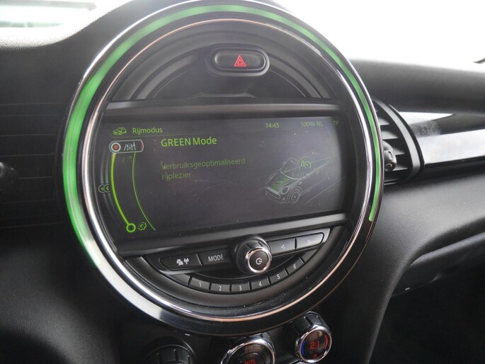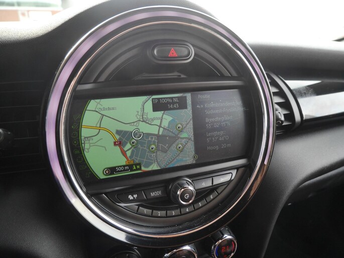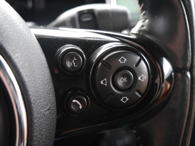 De achteruitrijcamera vergemakkelijkt achteruit inparkeren. U ziet duidelijk wat er achter de auto gebeurt. U kunt uw ogen op de weg houden, want het audio-installatiesysteem en het navigatiesysteem met harde schijf bedient u vanaf het stuurwiel. U verwacht natuurlijk automatische airconditioning in deze auto, en die is er dan ook. Het hoort bij een intelligente auto als deze dat hij zelf in staat is om zijn omgeving in de gaten te houden. Dat doet deze Mini met een automatisch inschakelbare verlichting en een regensensor. Kilometers rijden met een exacte snelheid? Dan is de cruise control je vriend! Wat u ook in deze auto kunt vinden zijn sportstuurwiel, keyless entry en boordcomputer.
