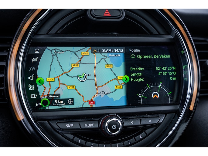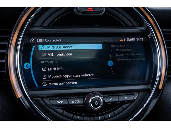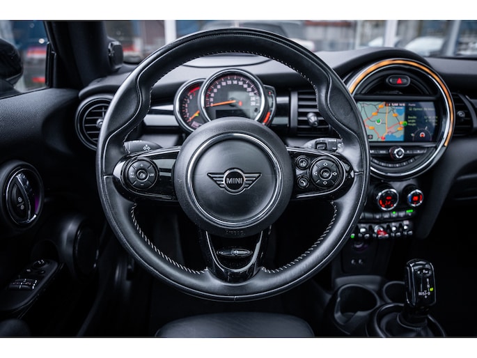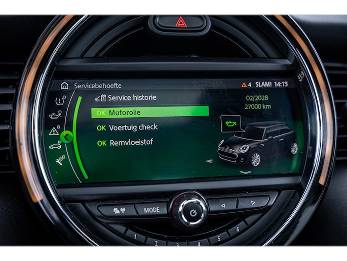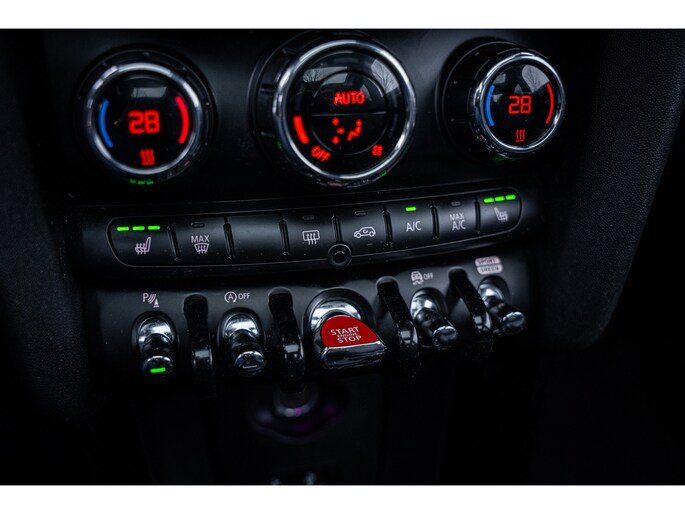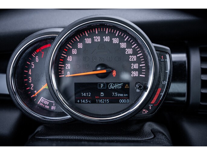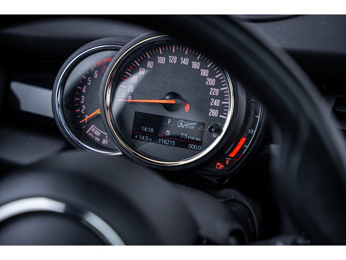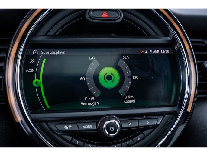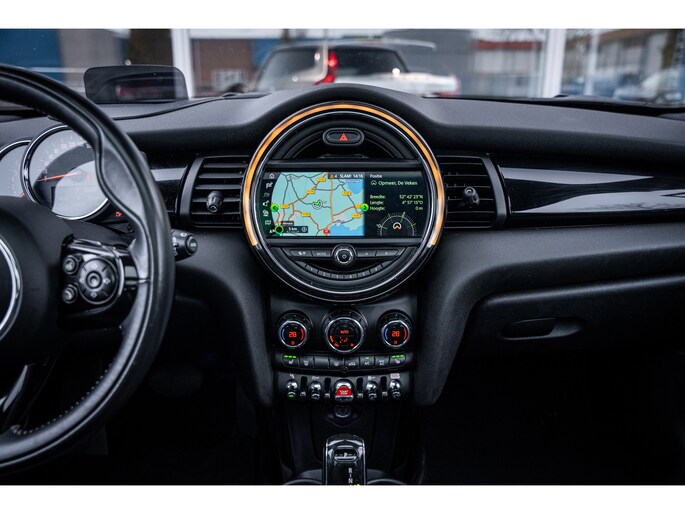 De speciale app verbindt met Connected Services, die de status van vitale functies bijhoudt en waarschuwt als u bijvoorbeeld moet tanken, de bandenspanning moet controleren of olie moet bijvullen. Het high performance audiosysteem produceert krachtige bassen en heldere hoge tonen. Kaartlezen is verleden tijd, dankzij het aanwezige navigatiesysteem met harde schijf. De achteropkomend verkeer waarschuwing bewaakt de afstand tot achterliggers en geeft een signaal als er te weinig ruimte is. De Mini is standaard voorzien van: automatische airconditioning, parkeersensoren achter, regensensor, cruise control, sportstuurwiel en keyless entry.