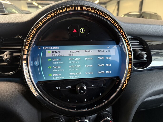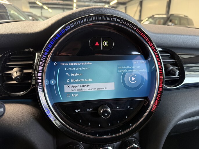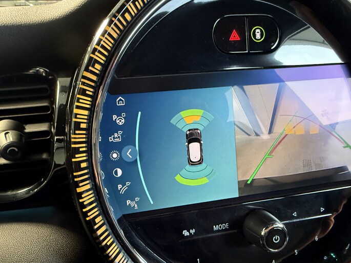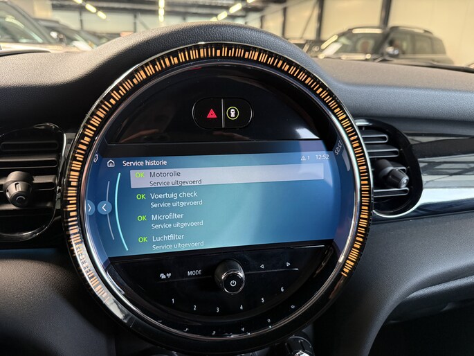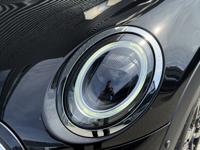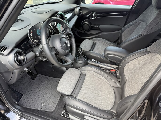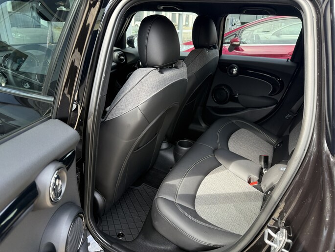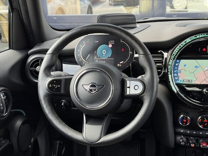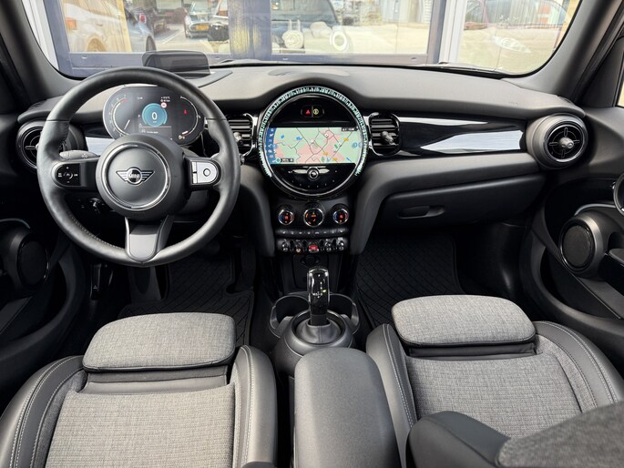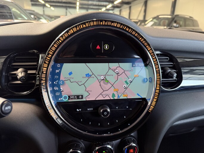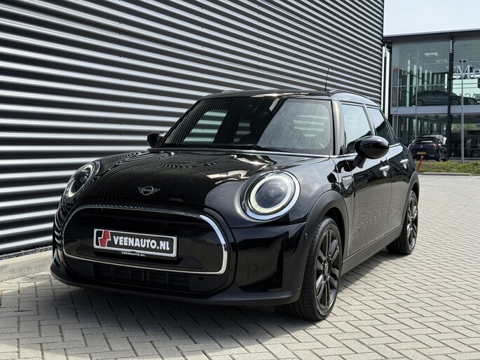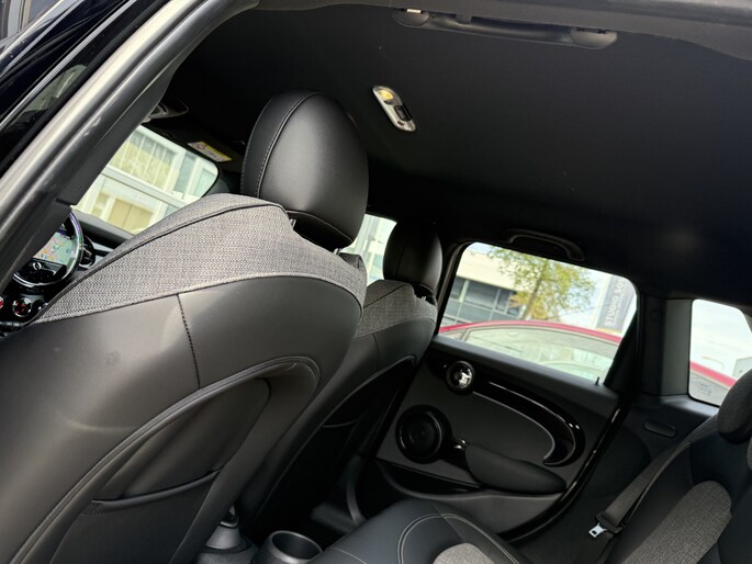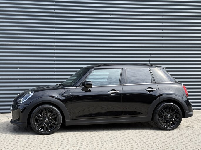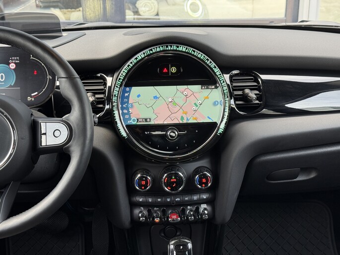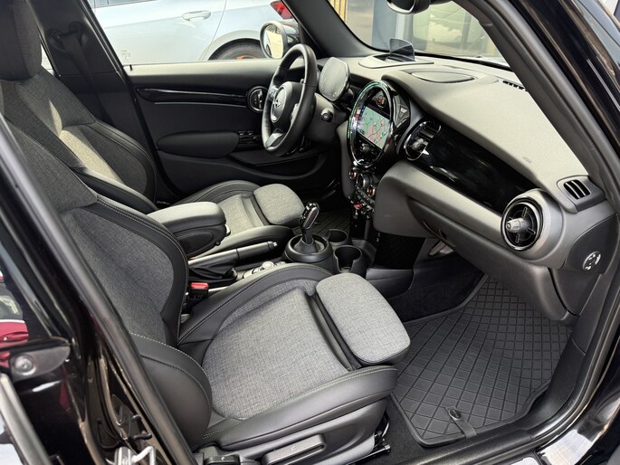Schitterende Mini 5-deurs automaat in Midnight Black metallic met 17 inch hoogglans licht metalen velgen op nieuwe banden. Deze Mini is voorzien van veel mooie opties zoals: Half lederen sport-comfort stoelen, stoel en stuurwiel verwarming, navigatie, Apple Carplay, achteruitrijcamera, parkeersensoren voor + achter, keyless entry and start, virtuele cockpit, Head Up display, zwarte hemelbekleding, draadloze telefoonoplader, LED sfeer interieur verlichting.