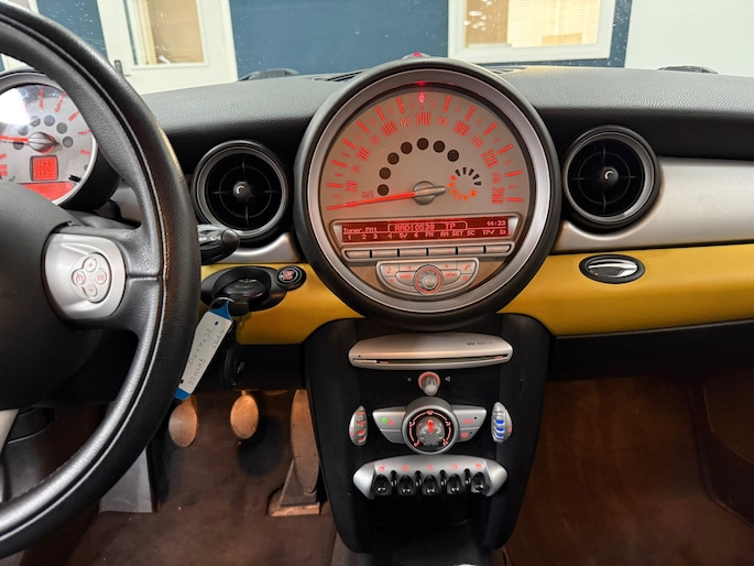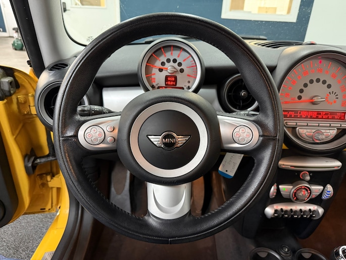Een constante snelheid is goed voor de ontspanning onderweg, en de cruise control zorgt ervoor. En natuurlijk is er ook gedacht aan airconditioning. Deze Mini is voorzien van buitentemperatuurmeter, automatisch dimmende binnenspiegel, lederen stuur, centrale deurvergrendeling met afstandsbediening en boordcomputer.
