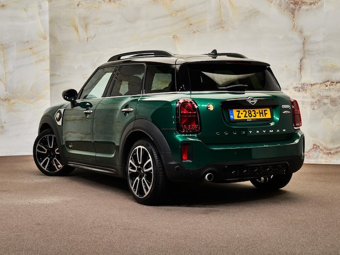 Dit betreft een zeer luxe en sportief uitgevoerde Countryman 1.5 Cooper SE ALL4 (224 pk) met John Cooper Works pakket. Kleur: British Racing Green IV Metallic (C3B) en interieur: Dinamica-/Stoff Carbon Black (DAE1). Deze auto heeft slechts 47.374 km gereden, is volledig volgens fabrieksschema onderhouden en verkeert in zeer goede staat. Uiteraard is alle documentatie aanwezig. Voorzien van vele opties zoals: