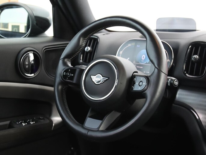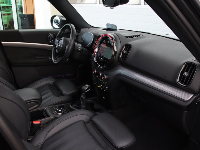 De eendrachtige samenwerking van de benzinemotor en de elektromotor geeft deze Mini Countryman zijn geweldige rijkwaliteiten. De luxe van het lederen interieur, gecombineerd met het gemak van het elektrisch bediende glazen panorama dak en de superhandige elektrisch bedienbare achterklep zorgen voor een wel heel complete uitvoering. Bestuurder en bijrijder krijgen een warm welkom: deze Mini Countryman is voorzien van verwarmbare voorstoelen. Stevig ondersteund door de sportstoelen blijft u bij elke beweging op uw plek. Tot de uitrusting behoren ook 18 inch lichtmetalen velgen, LED koplampen, sportonderstel, dakspoiler, donker getint glas achter en in delen neerklapbare achterbank.