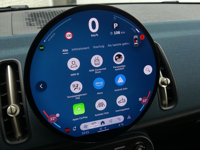 De automatische veiligheidssystemen in deze Mini fungeren als een extra paar ogen. En dat niet alleen, ze kunnen ook actief ingrijpen, om zo u en uw passagiers te beschermen. Het Top Gun-gevoel komt van de head-up display, die alle dashboardinfo in het rijzicht projecteert. Onderweg zorgt verkeersborddetectie ervoor dat u geen waarschuwingsbord mist. Met lane assist rijdt u altijd binnen de lijnen van uw rijstrook. Het systeem waarschuwt als u onbedoeld over de wegmarkering rijdt. De veiligheid van deze auto wordt verder verhoogd door front assist en bandenspanningcontrolesysteem.