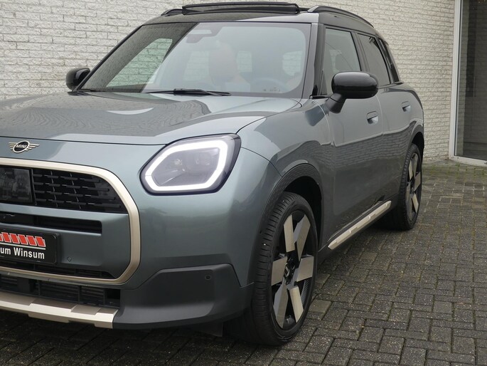 Met zijn dynamische eigenschappen belooft deze Mini Countryman (Nieuw Model) u een heleboel rijplezier. Hij is ontwikkeld op een geavanceerd onderstel en biedt altijd een veilig weggedrag. Deze auto is bijna nieuw, ondanks dat hij uit 2025 komt; hij heeft slechts 9084 kilometer afgelegd. De aandrijving van deze Mini wordt verzorgd door een krachtige en zuinige benzinemotor (156 Pk) en een automatische transmissie. Altijd al een voorliefde gehad voor een lederen interieur? Deze heeft het. Evenals een elektrisch bedienbare achterklep. Zit u goed? De bestuurdersstoel is eenvoudig instelbaar dankzij de elektrische bediening met geheugen. Het interieur lijkt groter en ruimtelijker dankzij het glazen panoramadak, tevens is deze elektrisch te openen. Bij de uitrusting van deze auto horen onder meer Full LED koplampen en achterlichten, elektrisch wegklapbare trekhaak, sfeerverlichting met instelbare kleuren, donker getint glas achter, lichtmetalen velgen 20'', in delen neerklapbare achterbank en elektrisch inklapbare buitenspiegels.
