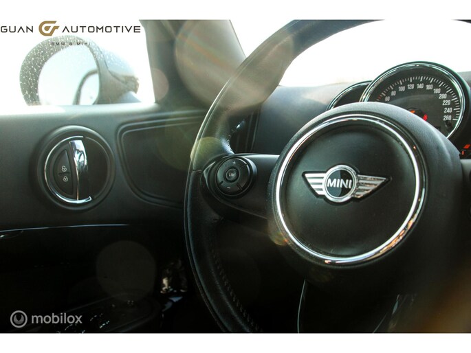 Het audio-installatiesysteem is zo ontworpen dat u het vanaf het stuurwiel kunt bedienen, zodat u veilig kunt blijven rijden en uw ogen op de weg kunt houden. De achteropkomend verkeer waarschuwing bewaakt de afstand tot achterliggers en geeft een signaal als er te weinig ruimte is. Met de automatische airconditioning selecteert u de gewenste temperatuur. Het systeem doet de rest. U kunt bij het inparkeren natuurlijk niet aan alle kanten ogen hebben. Daarom is deze Mini Countryman voorzien van parkeersensoren! Om de veiligheid onderweg te verhogen, heeft deze Mini zowel een automatisch inschakelbare verlichting als een regensensor aan boord, zodat hij zelf de verlichting en de ruitenwissers kan inschakelen. En deze auto heeft ook cruise control, sportstuurwiel, keyless entry en boordcomputer als standaard uitrusting.