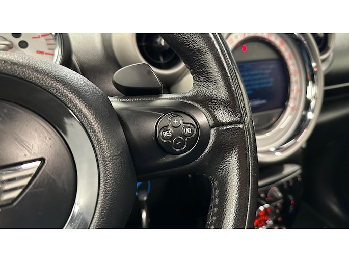 Als u regelmatig met een aanhanger of een fietsendrager op pad bent, is de afneembare trekhaak een praktische extra. Tijdens de rit bedient u het audio-installatiesysteem en het full map navigatiesysteem met de knoppen op het stuur of met uw stem. Met automatische airconditioning hoeft u alleen de gewenste temperatuur in te stellen. Het systeem doet de rest. Met de hulp van de parkeersensoren kost inparkeren en uitparkeren u geen enkele moeite. De elektronische systemen in deze Mini helpen u actief om comfortabeler te rijden. Een automatisch inschakelbare verlichting en een regensensor houden de omstandigheden onderweg in de gaten. Ook cruise control, buitentemperatuurmeter, isofix-aansluiting, centrale deurvergrendeling met afstandsbediening en boordcomputer horen tot de voorzieningen op deze auto.