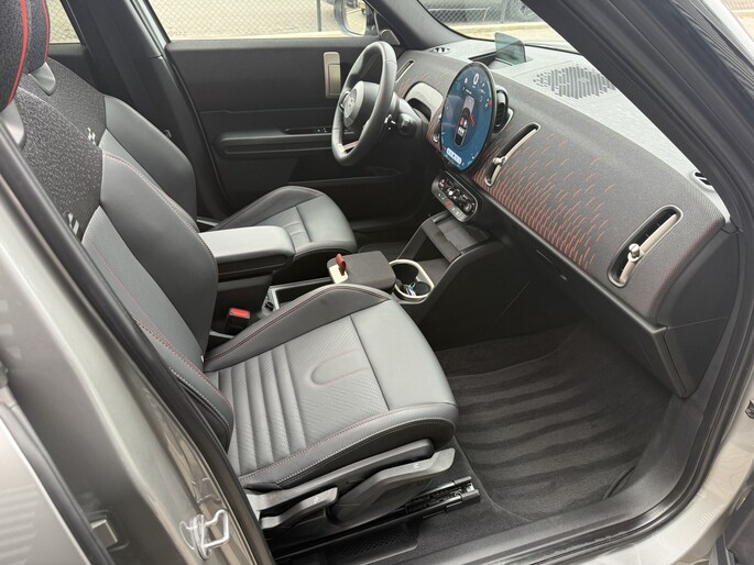 Schitterende Mini Countryman 1.5 C John Cooper Works in Melting Grey metallic van 12-2024! Deze Countryman is uitgevoerd met veel mooie opties zoals panorama dak, Harma Kardon Audio, lederen bekleding, JCW pakket, 360 Camera, adaptief onderstel, stoel en stuurwiel verwarming, comfort toegang, Head Up display, Apple Carplay/Android Auto, full map navigatie, etc..