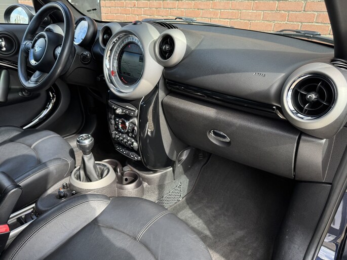 Bij de bouw van de MINI Countryman wordt niets aan het toeval overgelaten. Vandaar dat hier een auto staat die in optimale conditie verkeert. Met zijn benzinemotor en handgeschakelde zesversnellingsbak is dit een prima auto voor nog vele kilometers. Eén blik naar binnen bewijst het al: pure klasse, onder meer dankzij het lederen interieur. De verwarmbare voorstoelen zijn een weldaad voor rug en schouders. De sportstoelen houden u en uw passagier stevig vast tijdens een snelle rit, maar bieden ook altijd comfortabele ondersteuning. Comfort, licht en het complete gevoel van ruimte wordt verzorgd door het elektrisch bediende panoramadak. In het donker zorgt de xenonverlichting voor een goed zicht op de weg. Verder is de MINI uitgerust met: 18 inch lichtmetalen velgen, zwarte hemelbekleding, dakspoiler en getint glas.