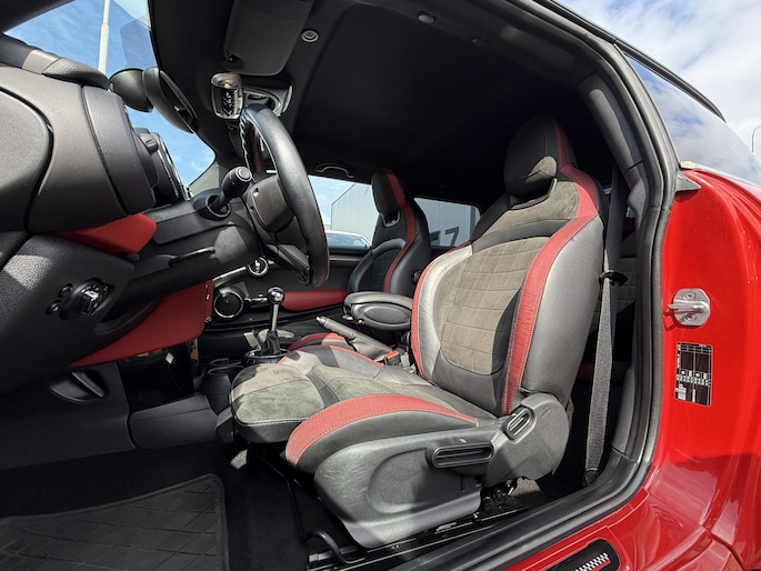 De meeste MINI’s zijn automaatjes, gemaakt voor types die liever hun nagels lakken dan schakelen. Deze niet. Dit is de John Cooper Works met handbak – 231 pk puur kartgevoel.